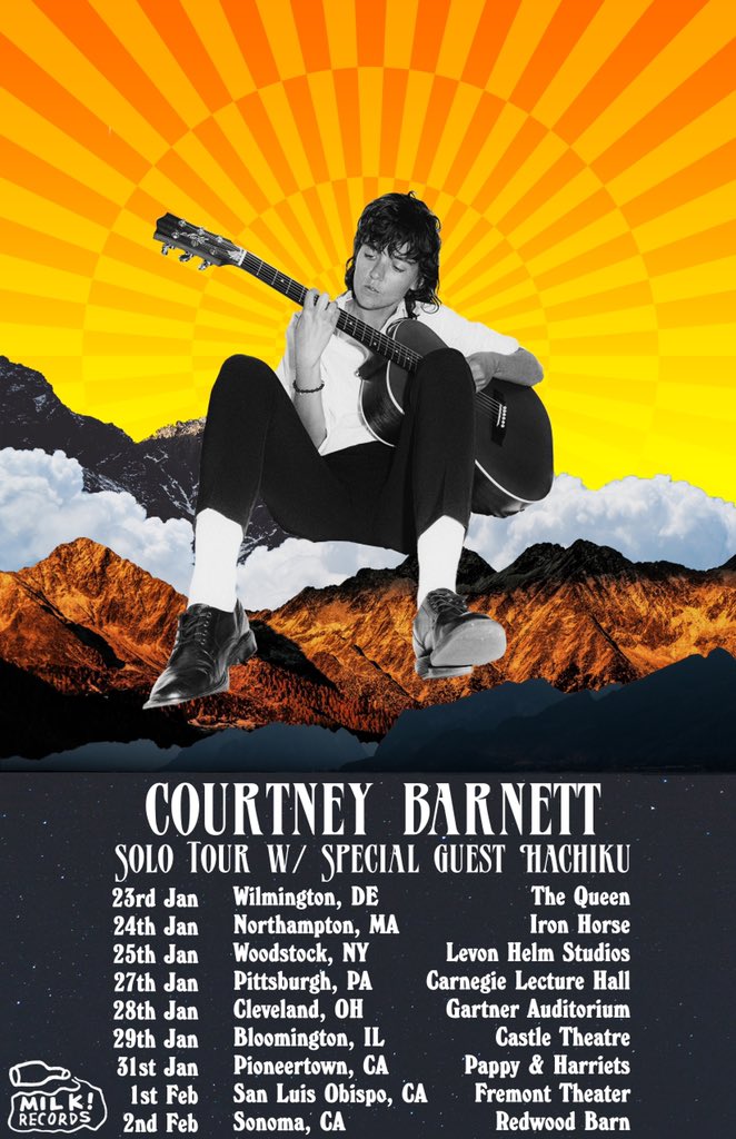 Hitting the road for some solo shows in Jan/Feb. my wonderful friend @hachikumusic will be opening proceedings 🌹 Tickets on sale Friday 10am https://t.co/3hEXj9Eufw Poster by Natasha Chomko, Photo by Pooneh Ghana pic.twitter.com/mGh3TXslxl— courtney barnett (@courtneymelba) September 4, 2019