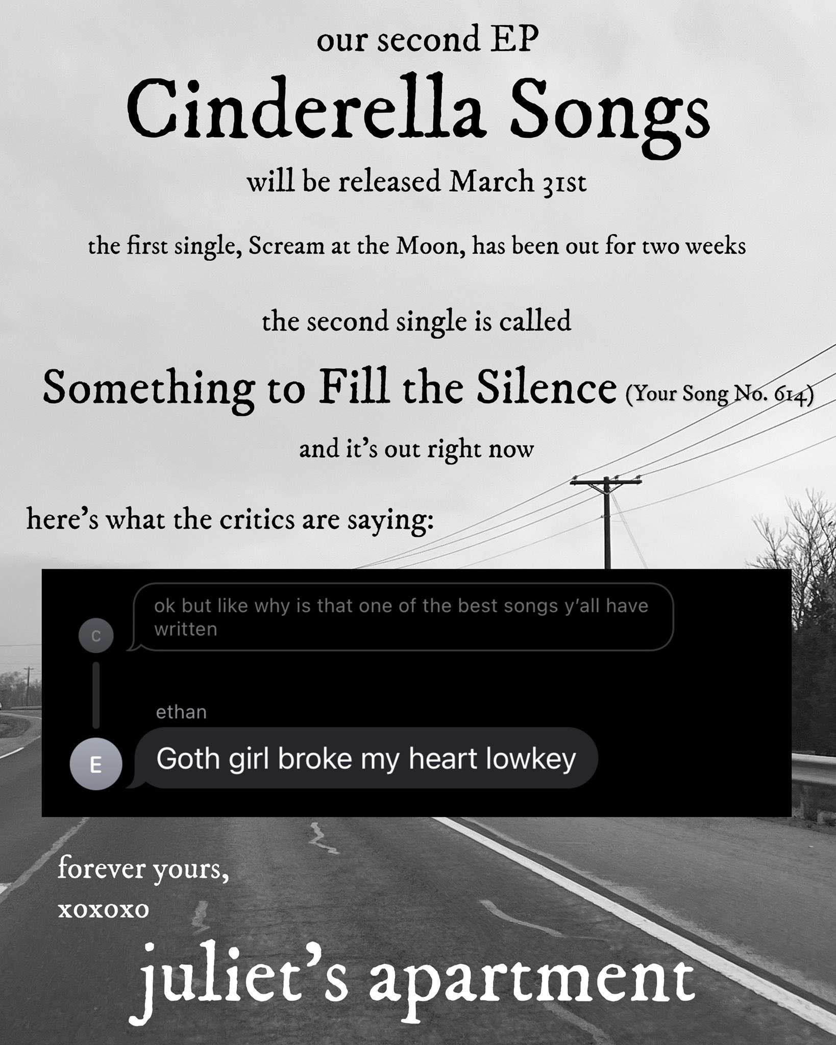 Juliet’s Apartment - New Song “Something to Fill the Silence (Your Song No. 614)”